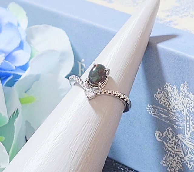 炭のように沈んだオパールの輝きの中に、かすかに揺らめく魔力の痕跡。 これは古の術者が残した“記憶”の器。今もなお封印は解かれていない。 宝石:オパール(天然石、炭化処理あり) リング素材:スターリングシルバー925 数量:1個 リングサイズ:調整可