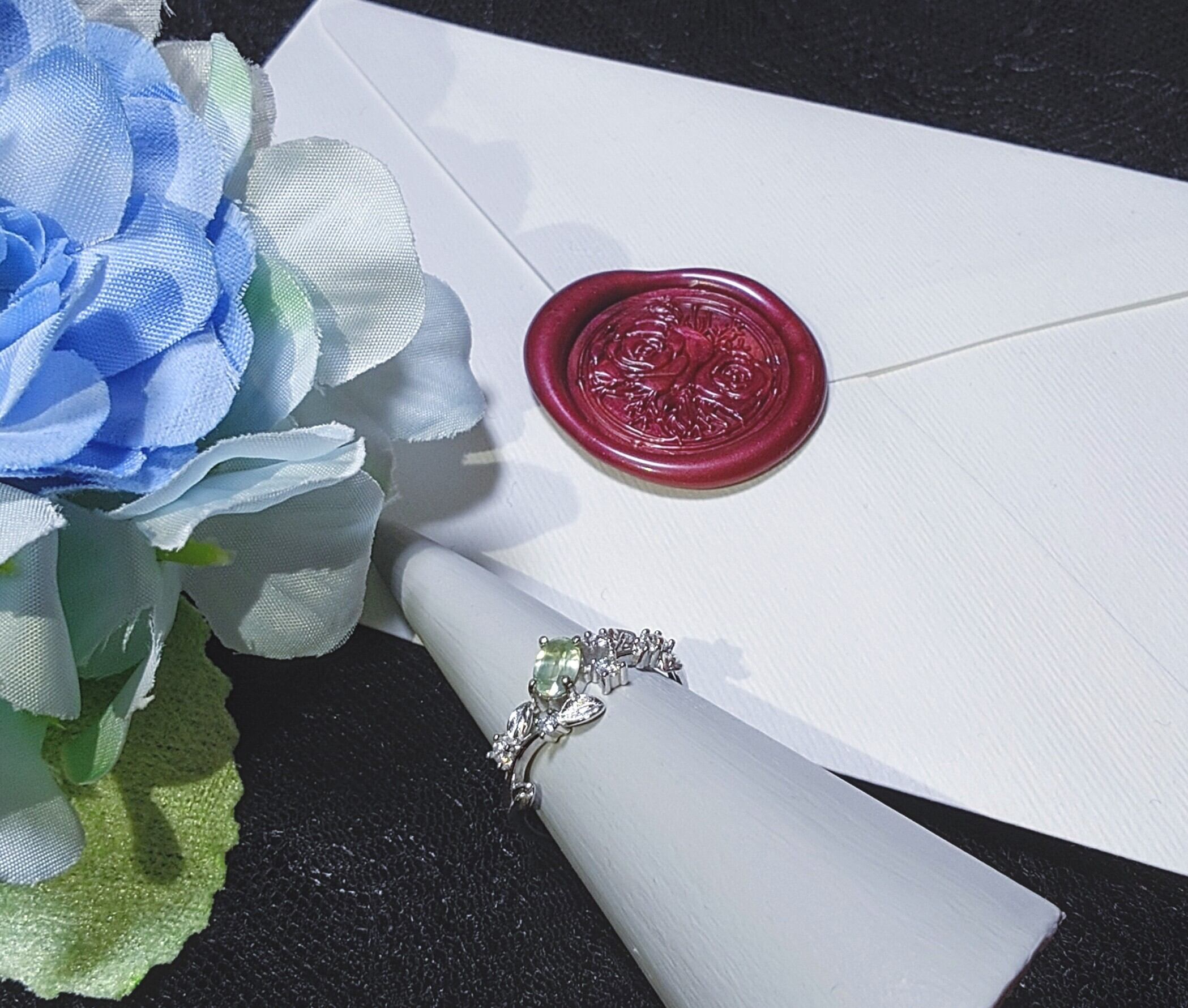 柔らかなミントカラーが美しいカイヤナイトを包み込む、繊細で優しいデザインです。