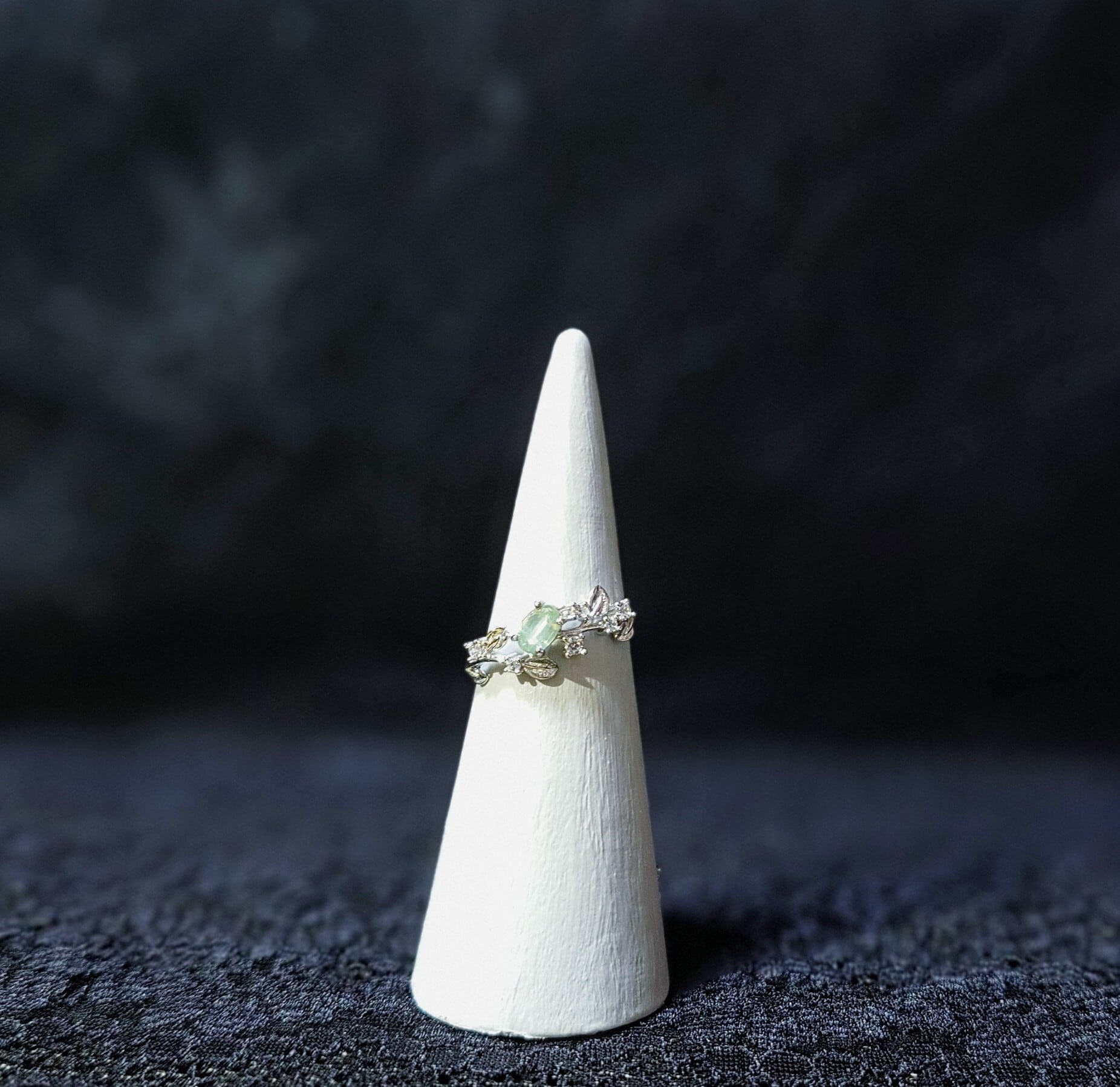 自然の枝葉をモチーフに、小さな実のような宝石をあしらったリング。