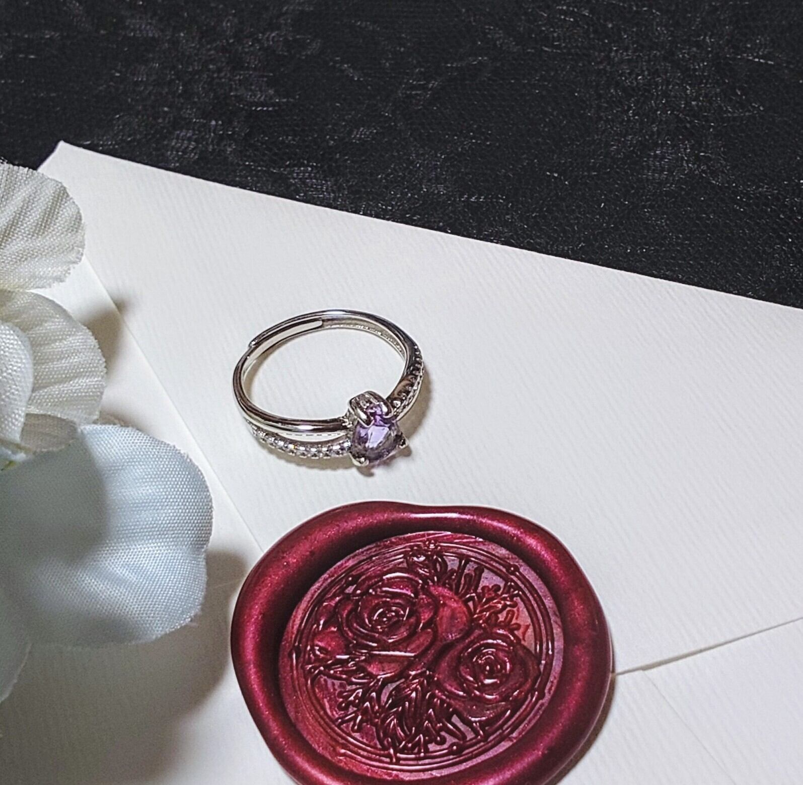 透明感のあるアメジストが、やさしい波のように指先を包み込みます。
