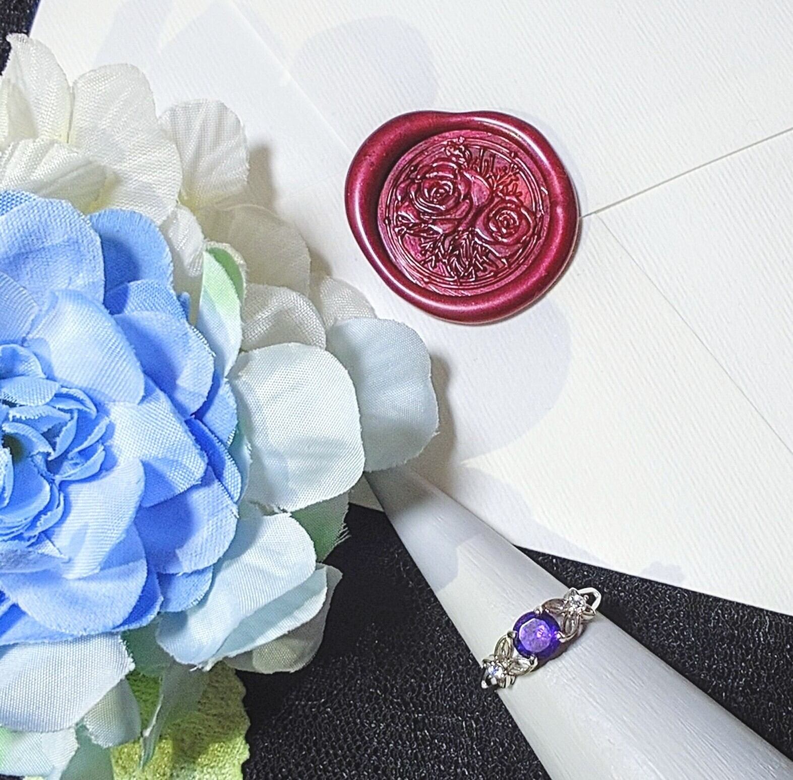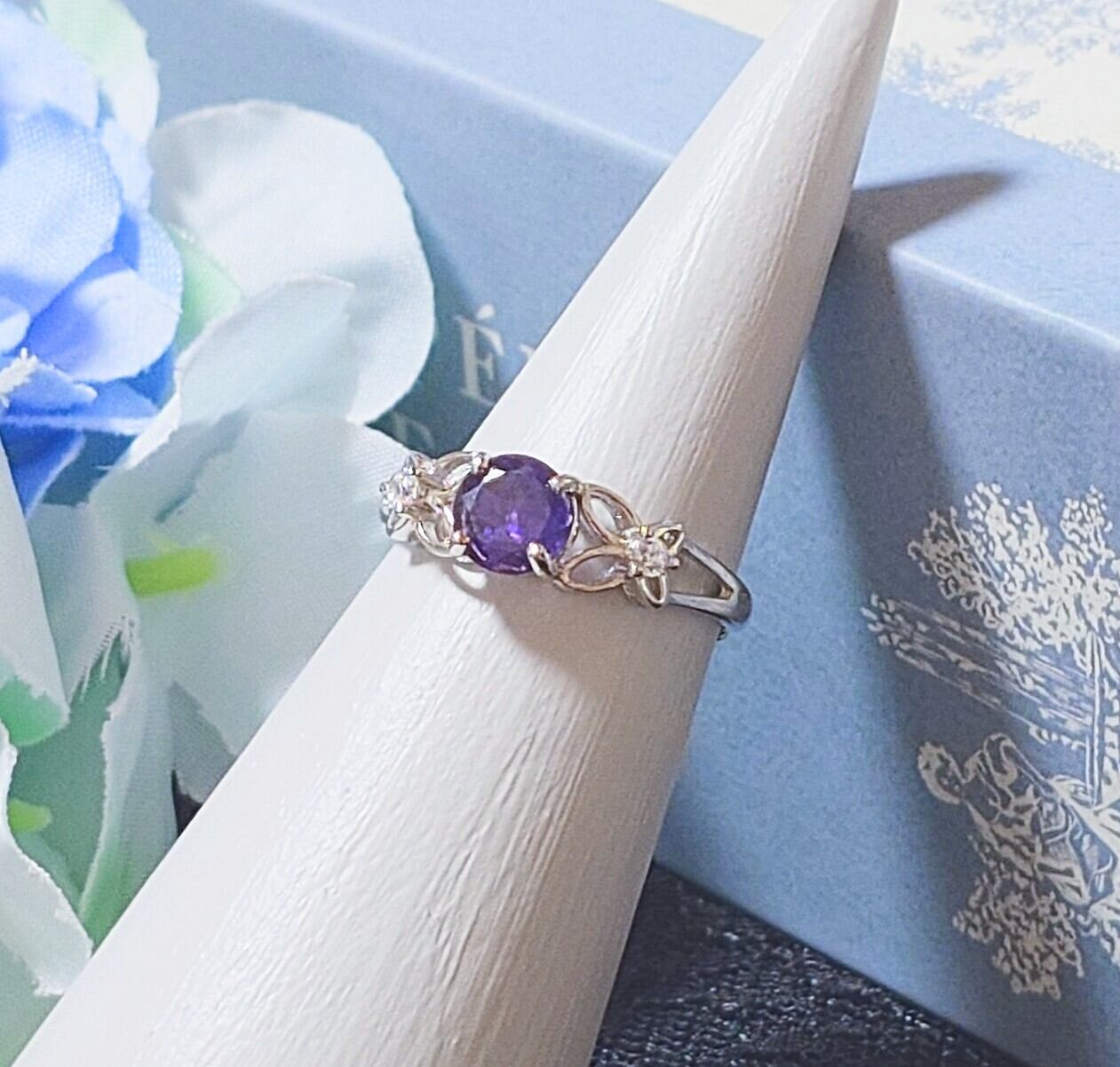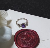 濃紫のアメジストが静かに羽ばたきを伝えるリングです。