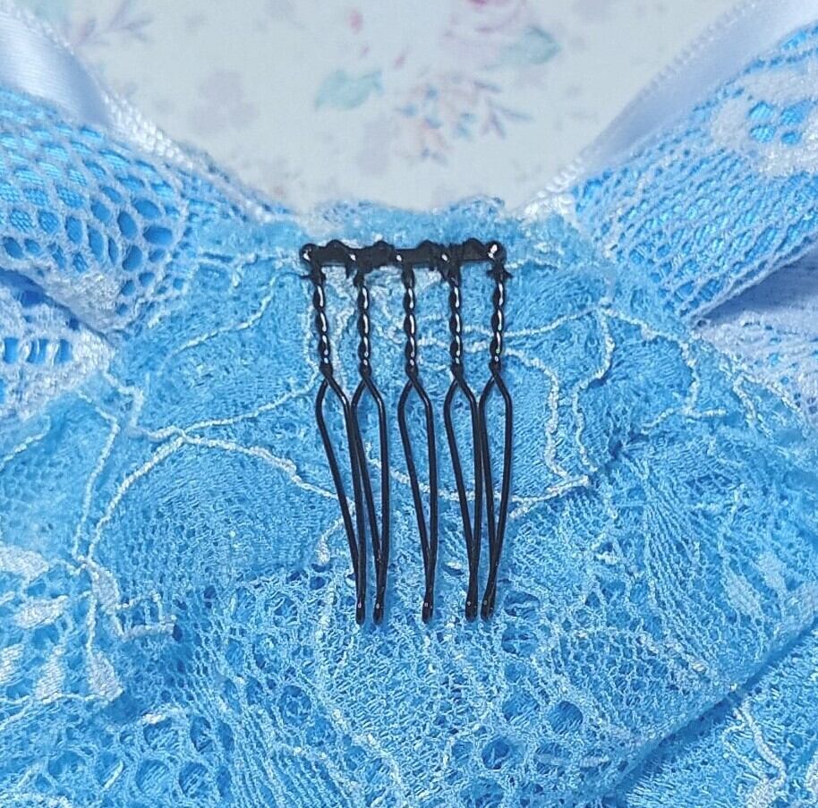 装着方法:コームの足をまとめてヘアゴムに挿し、ポニーフックのようにご使用いただくと使いやすいです
