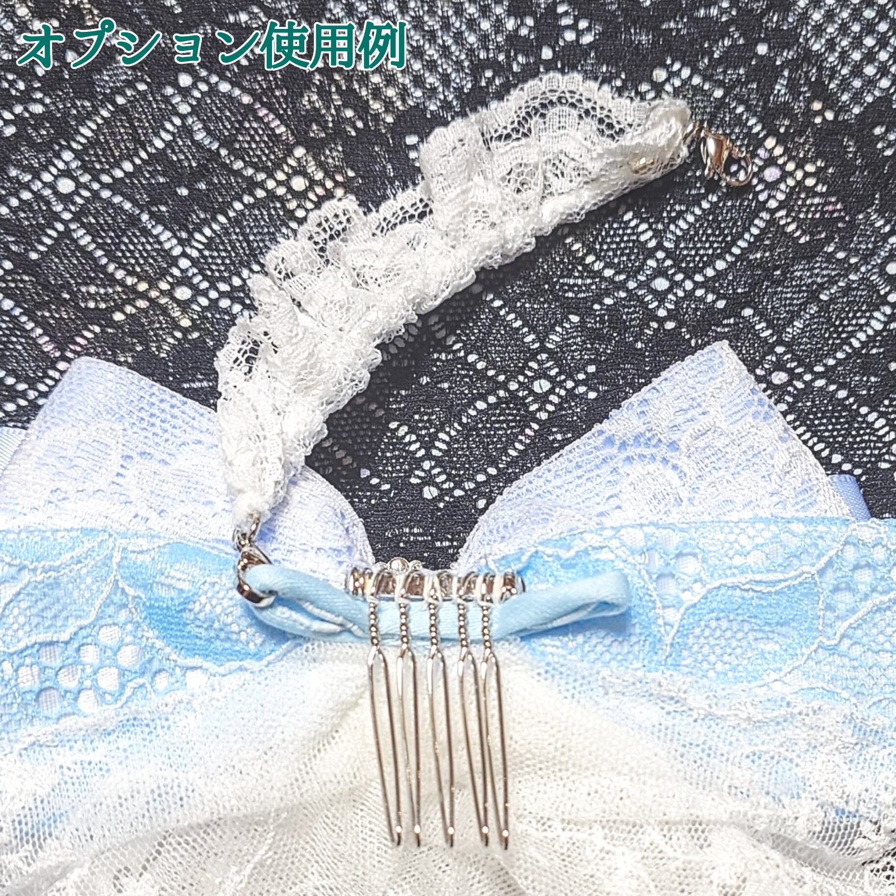 装着方法:ポニーフックのようにご使用いただくか、コームを利用してヘッドドレスとして装着いただけます。