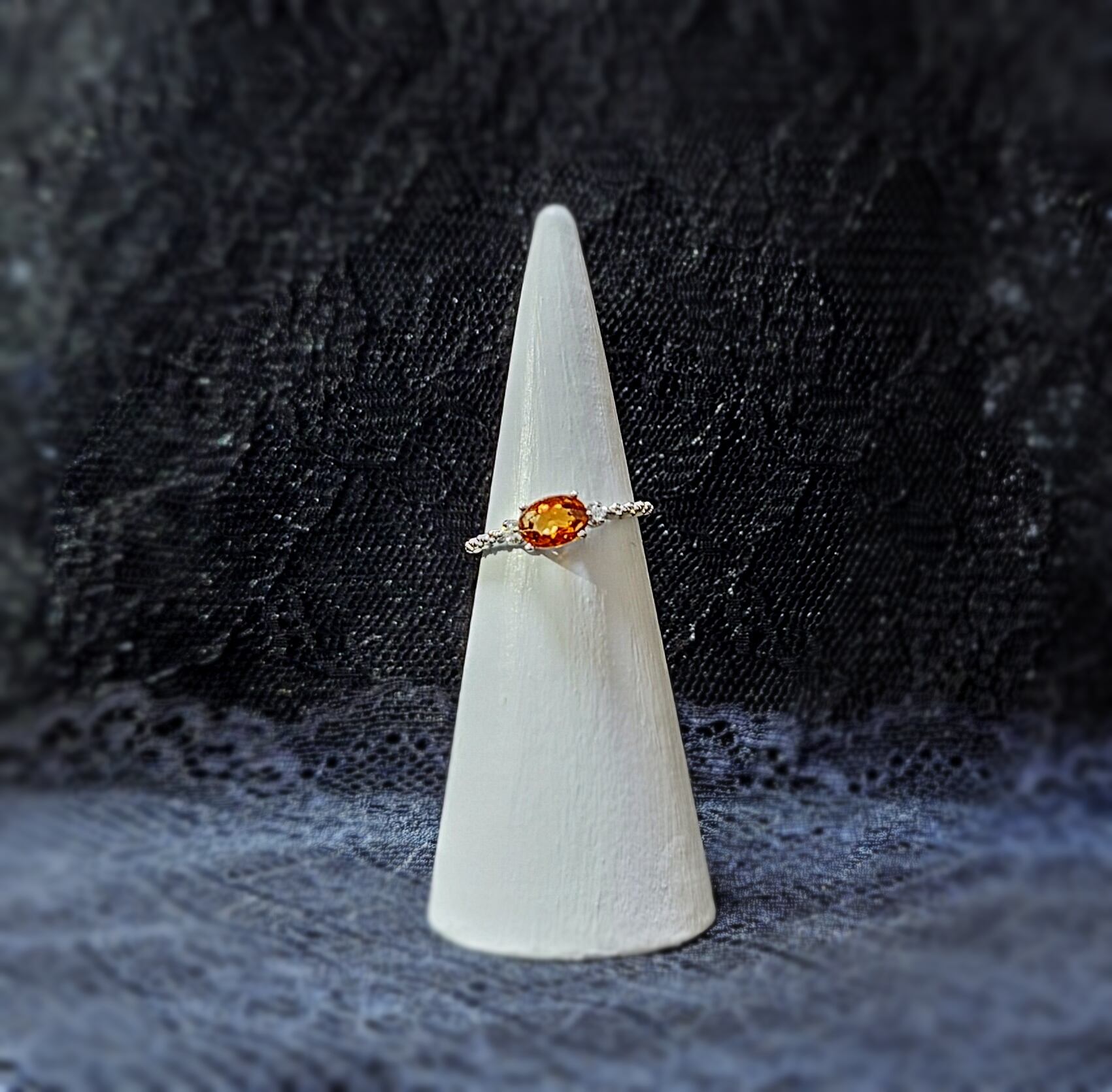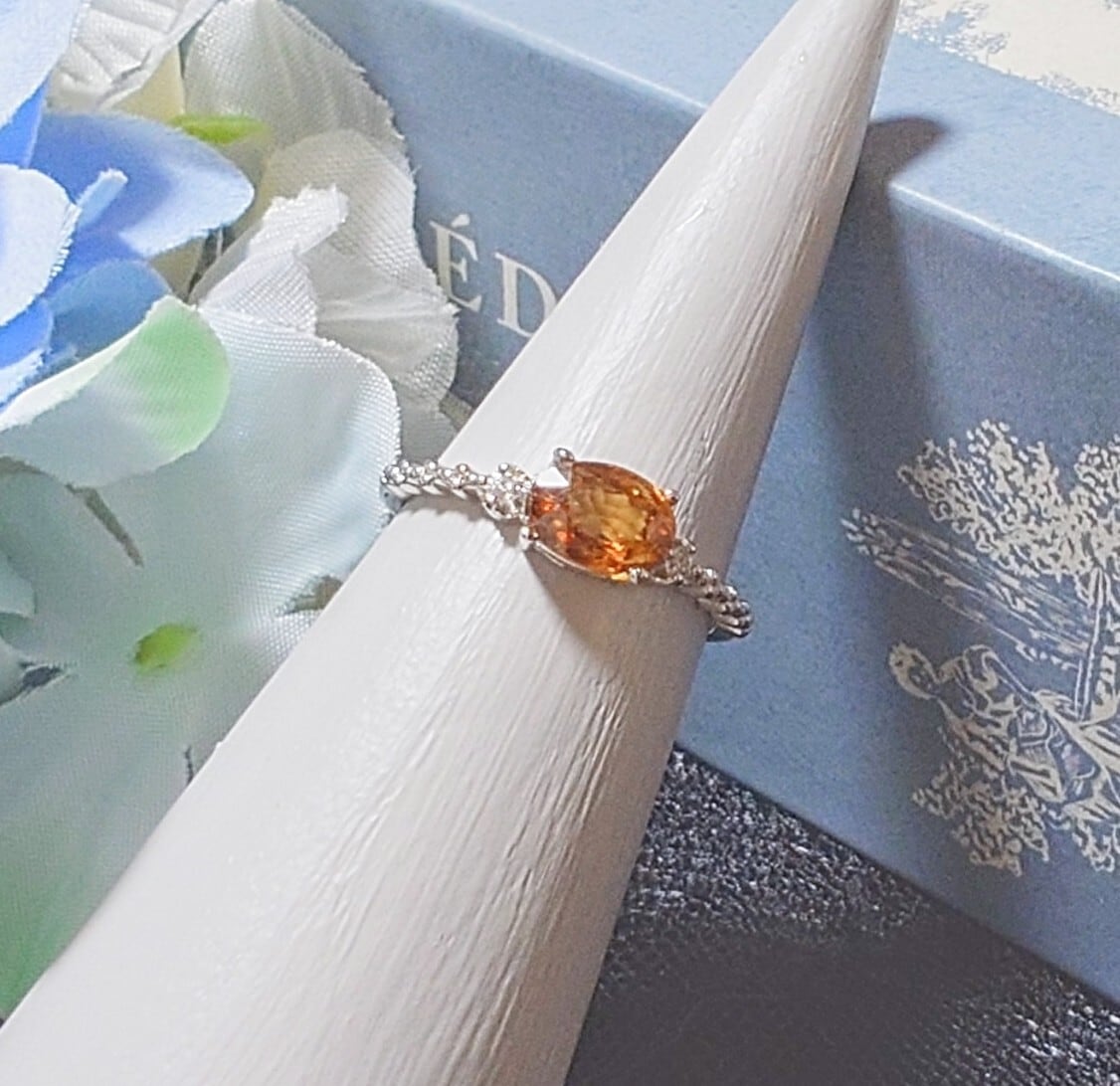 ジルコンの温もりを帯びた光が、進む心に寄り添うような指輪です。