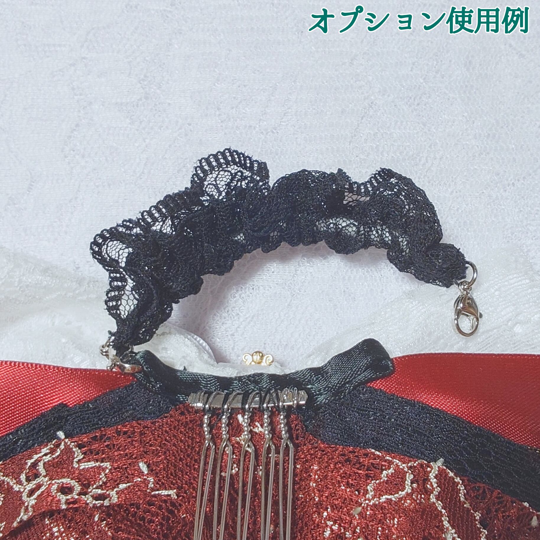 装着方法:ポニーフックのようにご使用いただくか、コームを利用してヘッドドレスとして装着いただけます。