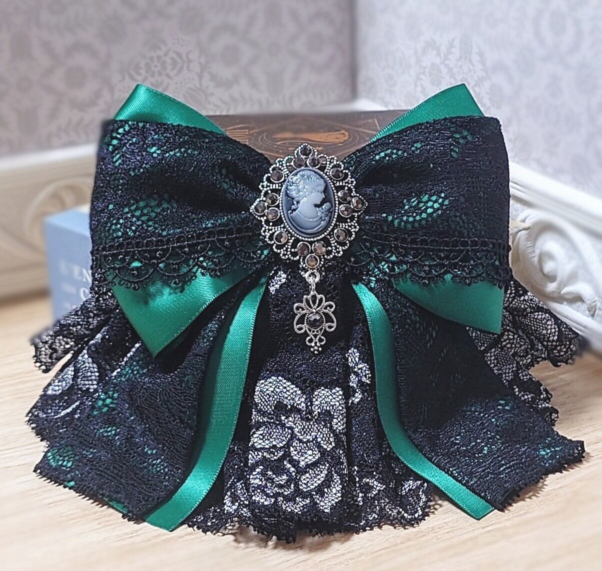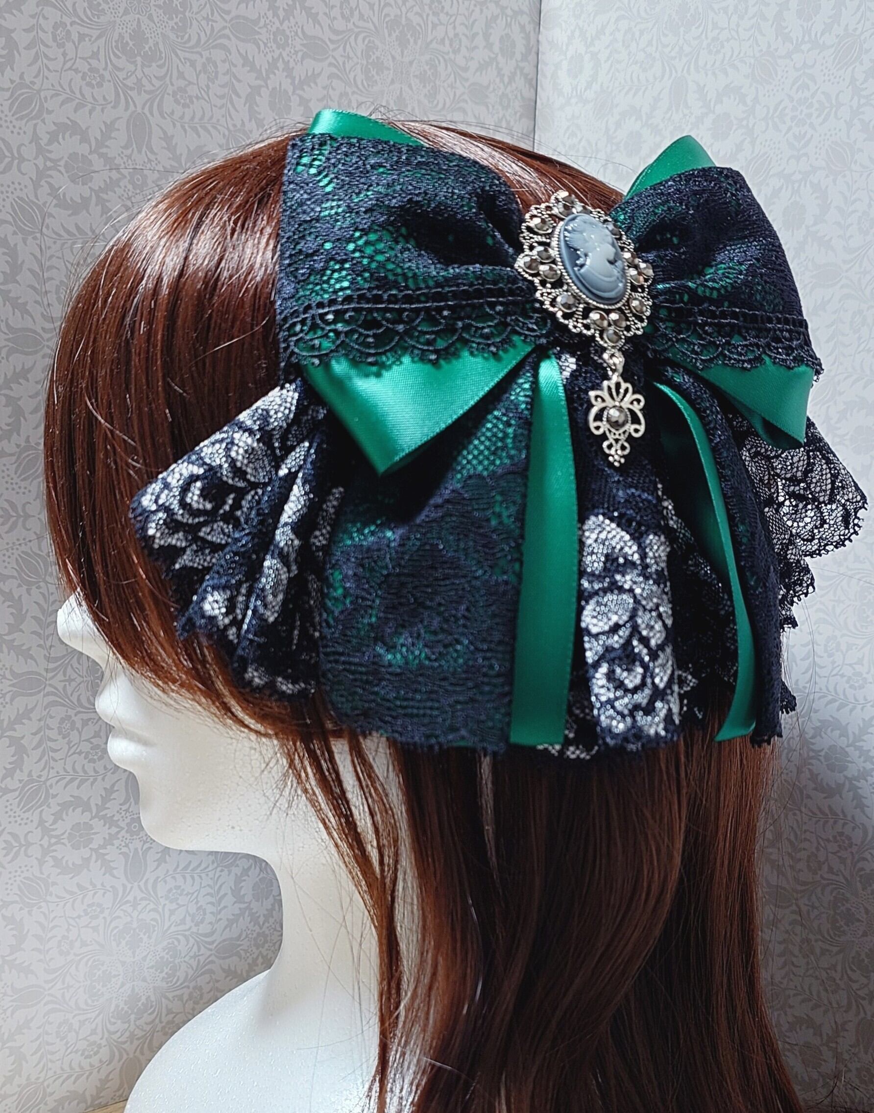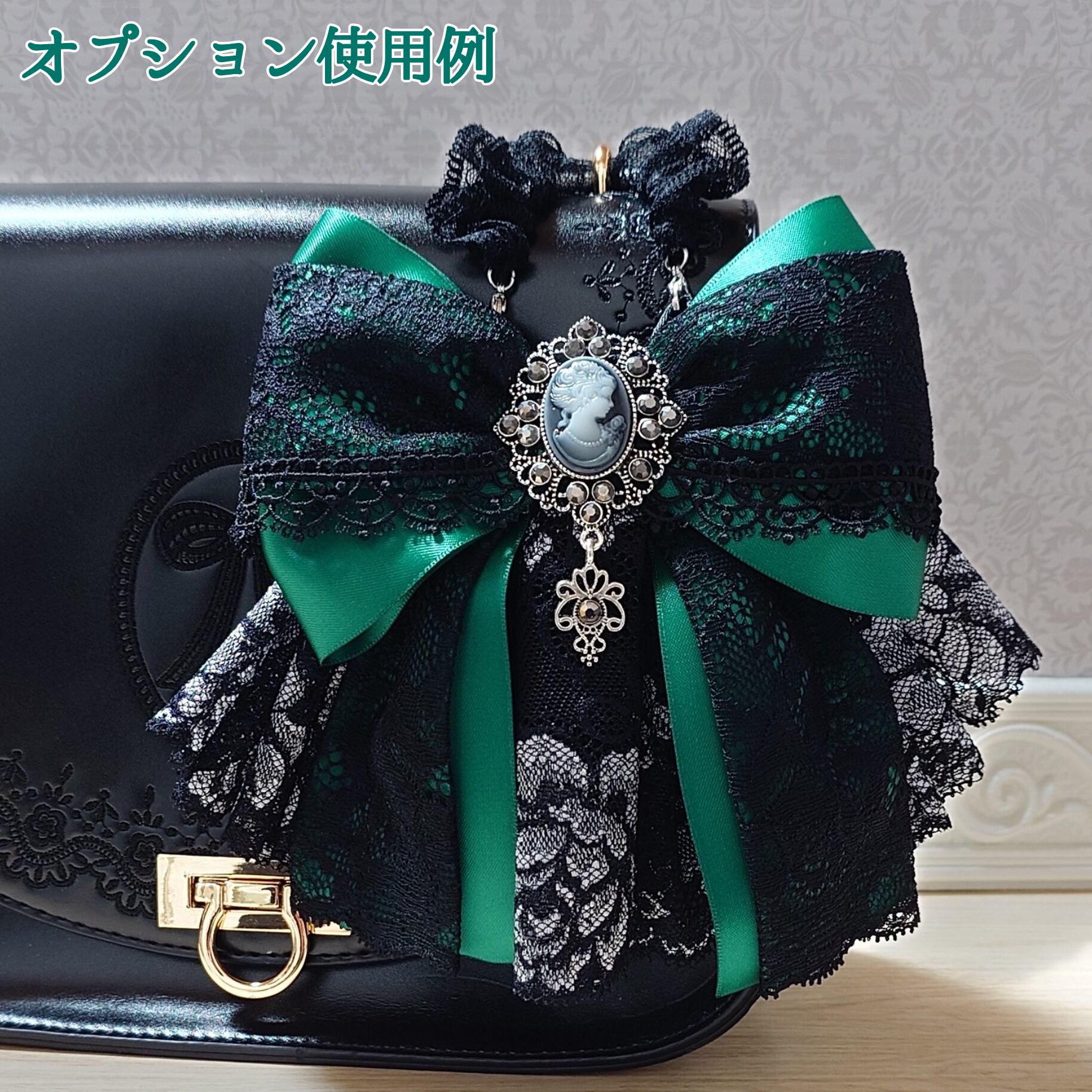 レース付きゴム:裏面のフープに付けることで、バッグチャームとしてもご使用いただけるようになります。