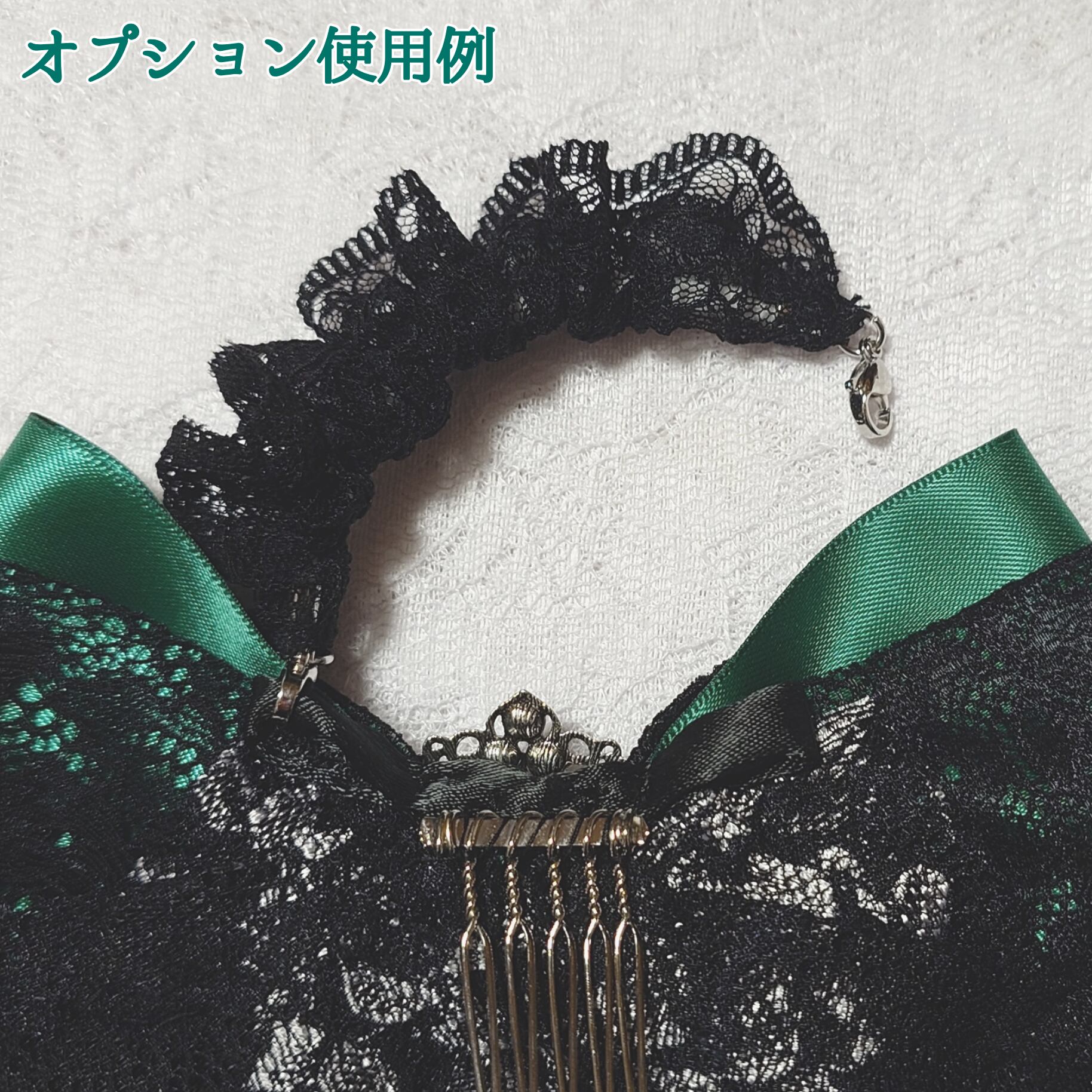 装着方法:ポニーフックのようにご使用いただくか、コームを利用してヘッドドレスとして装着いただけます。