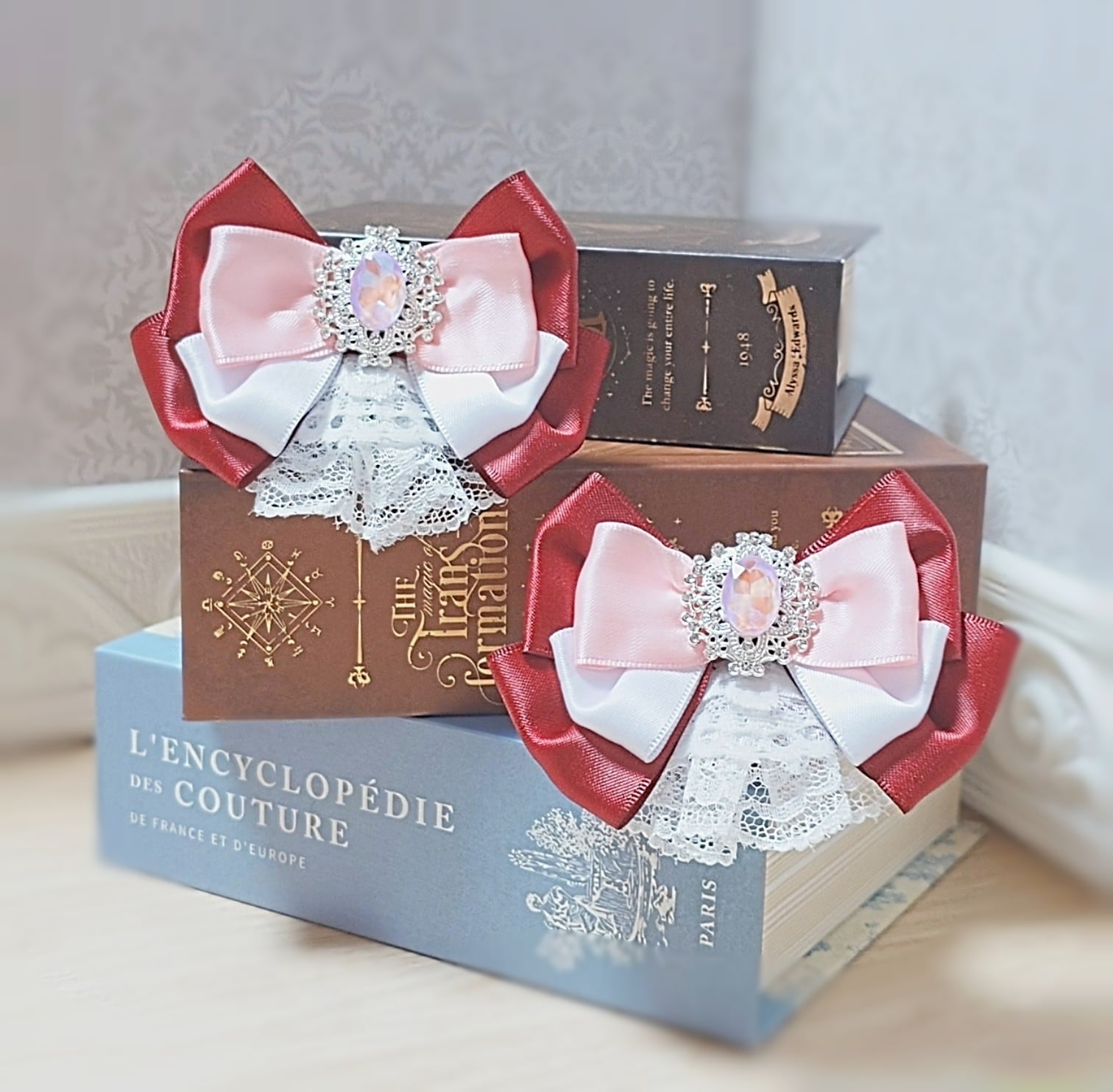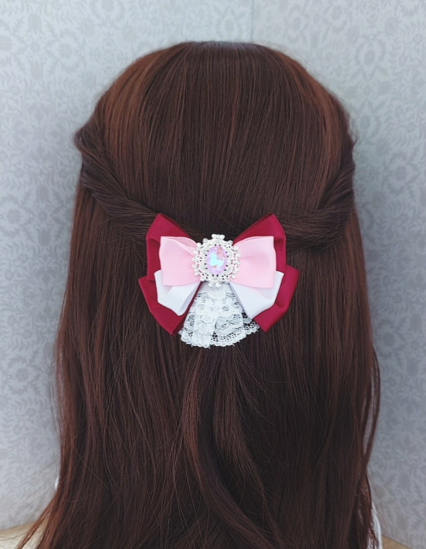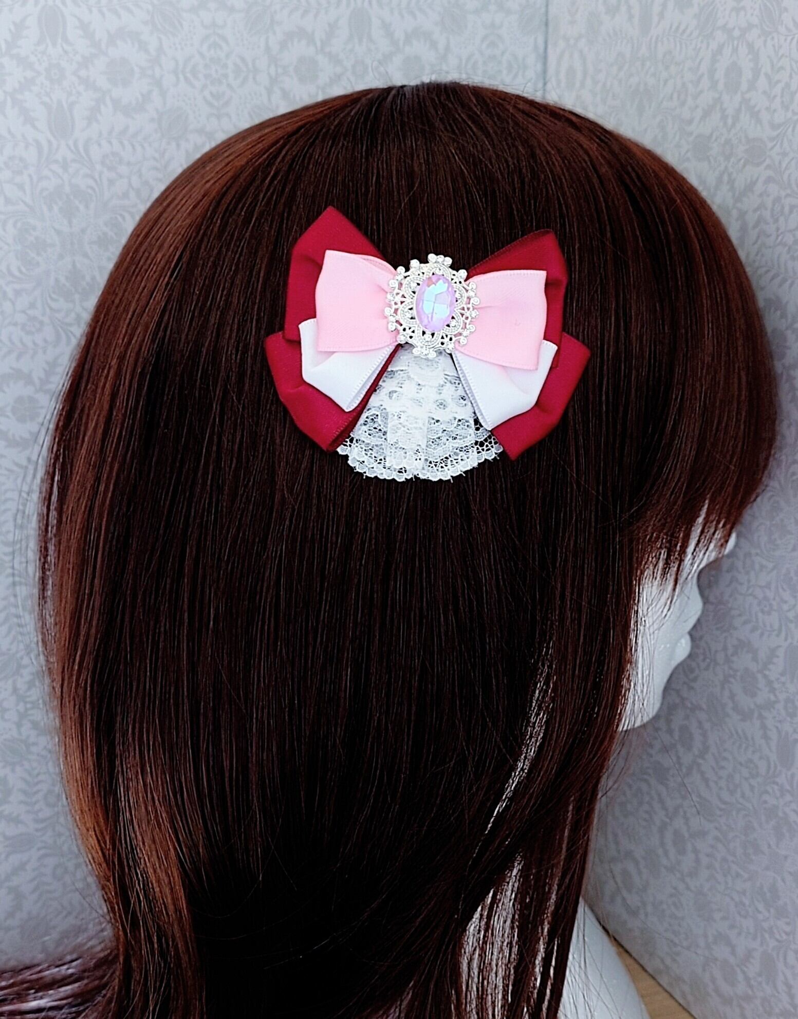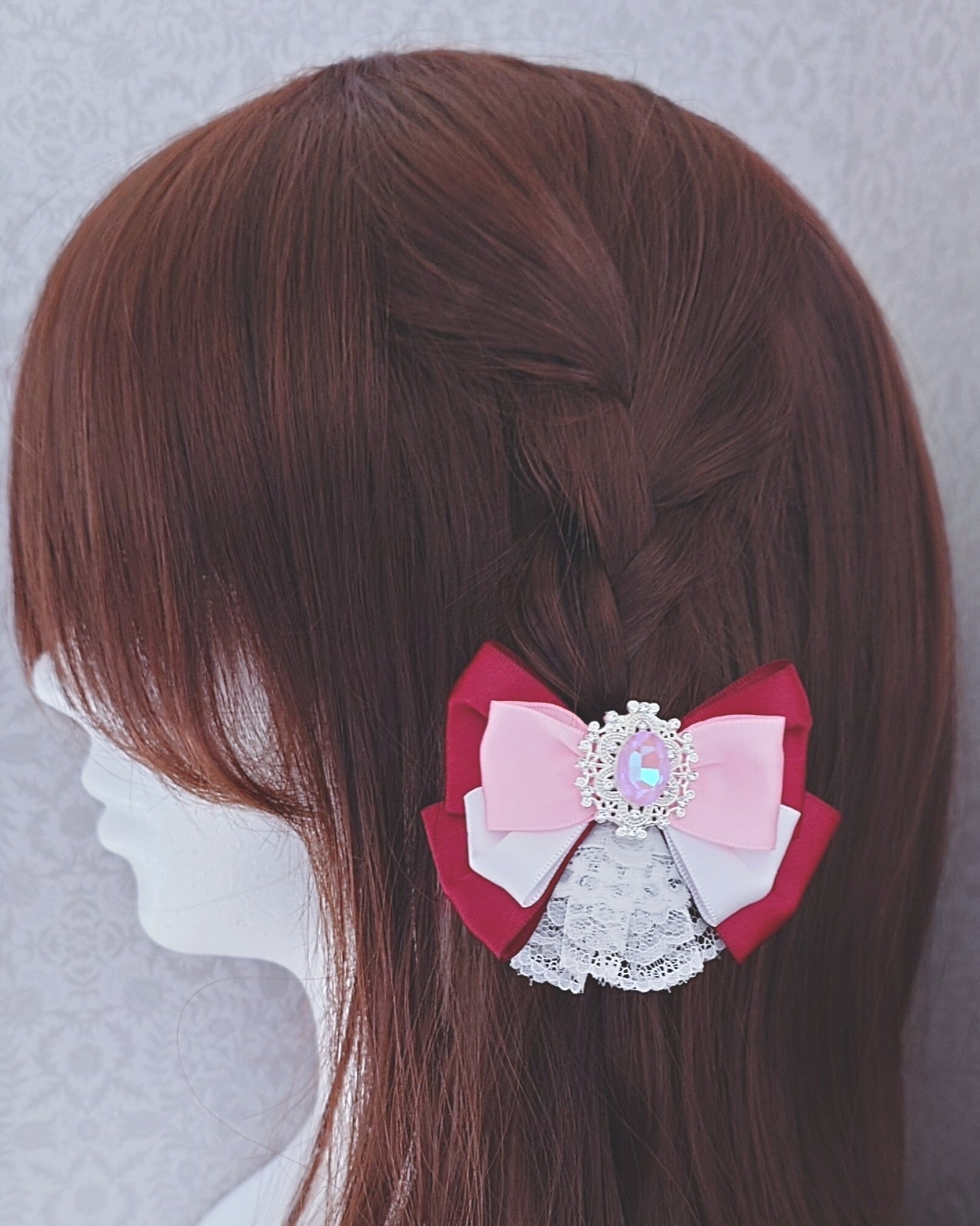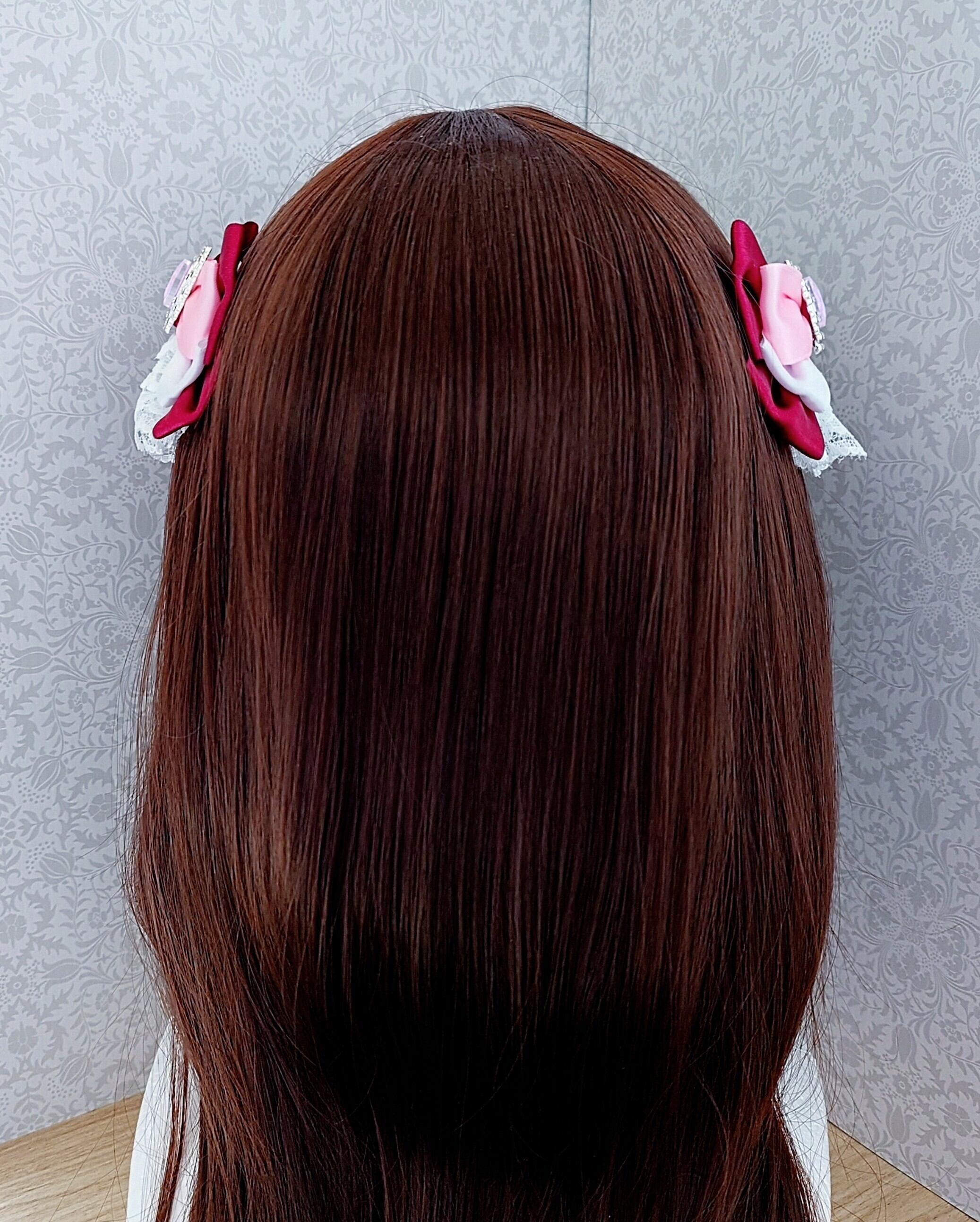 装着方法:スリーピンでお好きな場所に付けられます。結んだ髪のゴム隠しにも◎